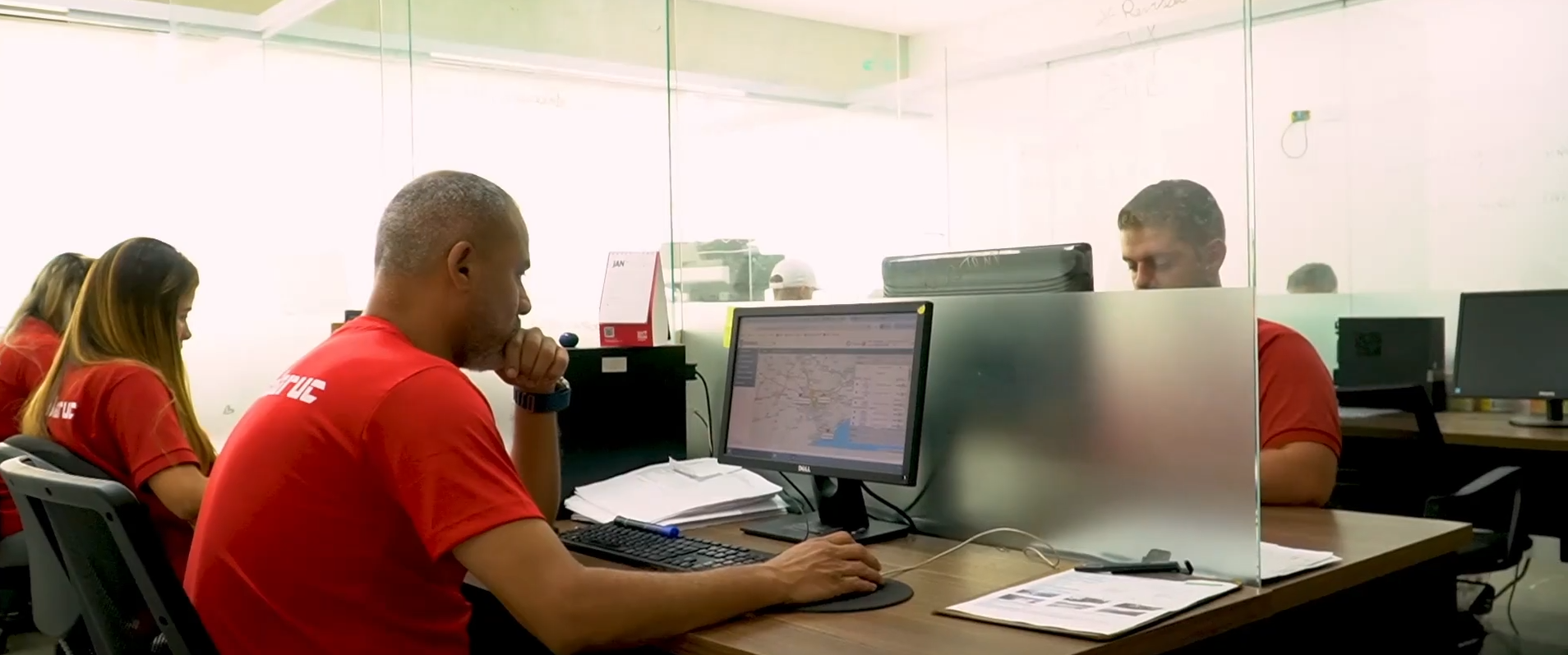 Frota composta por mais de 100 veículos. Operamos com 100% da frota rastreada. Isto possibilita o acompanhamento em tempo real de informações como localização e velocidade.